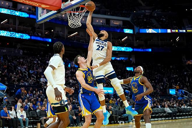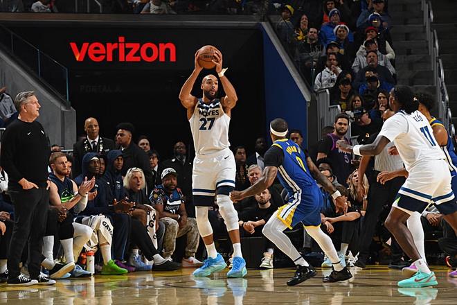 本场比赛中,森林狼的先发中锋鲁迪-戈贝尔(Rudy Gobert)简直是打爆了勇士的内线。戈贝尔全场出场35分10秒,投篮13中11,罚球3中2,得到了24分14篮板1助攻2抢断1盖帽的两双数据,其中还包括了4个前场篮板,还有4次犯规,正负值为+8。戈贝尔在进攻端大杀四方势不可挡,他在对手内线制造了巨大的威胁,他在身材方面的优势尽显无遗,勇士方面根本没有办法对他进行有效地限制。戈贝尔在前后场篮板争抢方面的表现也是值得肯定的,而且他在内线防守方面也是起到了关键性的作用。大家都知道戈贝尔是一名优秀的内线防守者,不过在本场比赛中,戈贝尔在进攻端的表现也是可圈可点的水平,他的一系列出色表现也是球队能够战胜勇士的重要因素。